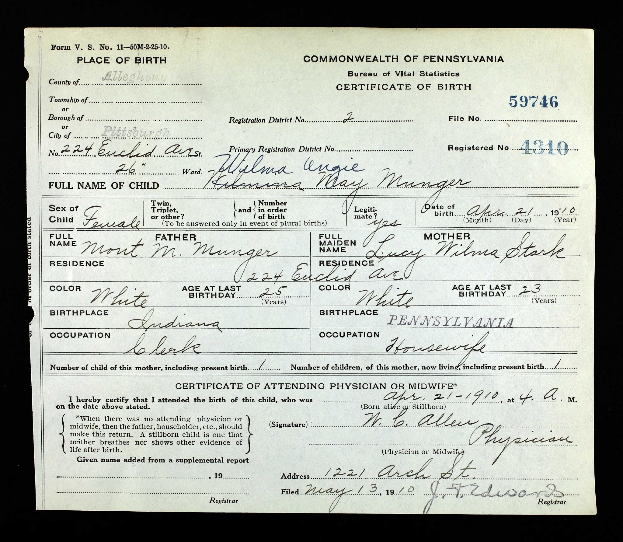 - Lucinda "Lou" Bell Orr (my maternal great grandmother) born June 29, 1844, Elkrun Township, Columbiana County, Ohio, died December 15, 1909, Bellevue, Allegheny County, Pennsylvania. Married Alfred F. Frederick (my maternal great grandfather) on October 22, 1868 in Columbiana County, Ohio.